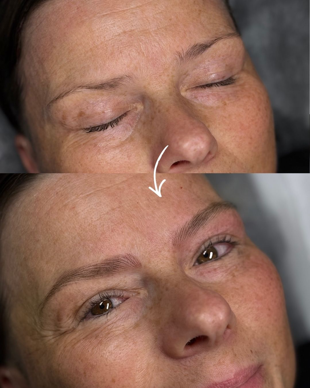 Natomiast jeśli stary makijaż jest już bardzo delikatny i pozostał jedynie lekki, słabo widoczny cień, wówczas Metoda Włosa często jest możliwa do wykonania. Dokładną decyzję podejmuję dopiero po ocenie brwi.