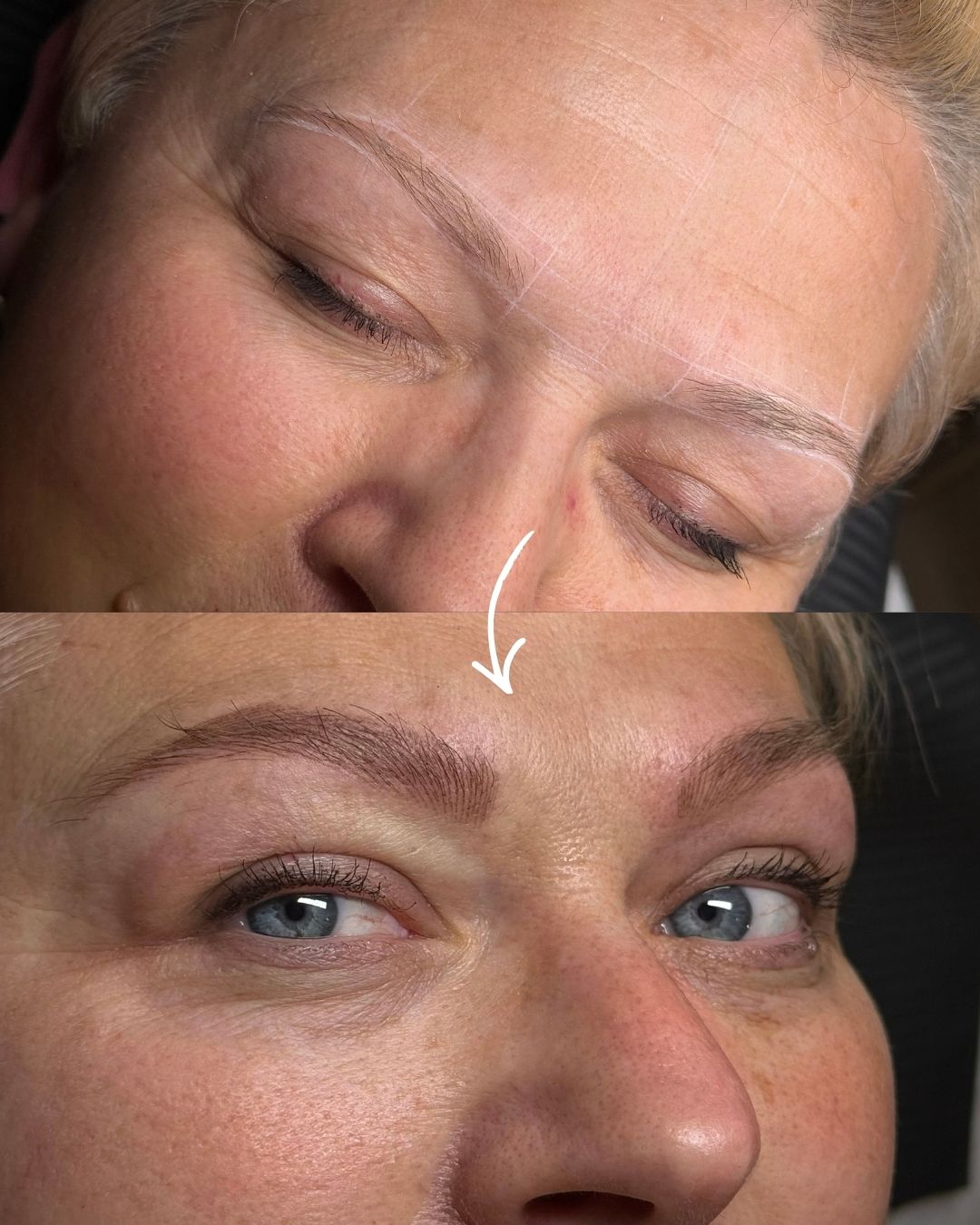 • Gojenie skóry i pigmentu przebiega w fazach. W pierwszych tygodniach część pigmentu naturalnie ulega „wyblaknięciu”, a skóra stabilizuje się – dlatego po wstępnych efektach zawsze konieczna jest korekta, aby uzupełnić to, co stopniowo się utrwaliło.