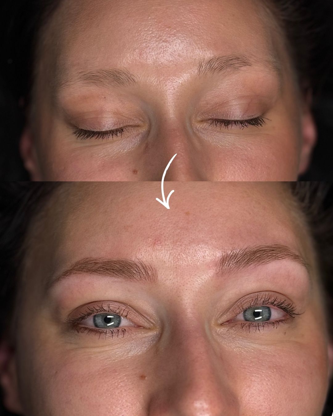 Kolor będzie jaśniejszy i bardziej dyskretny niż bezpośrednio po zabiegu, ale nadal widoczny – tak, aby brwi podkreślały Twoją urodę, nie dominowały twarzy.